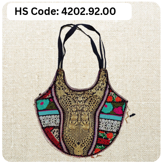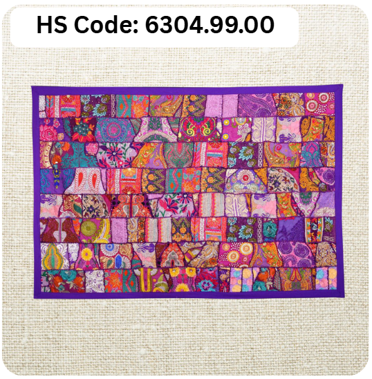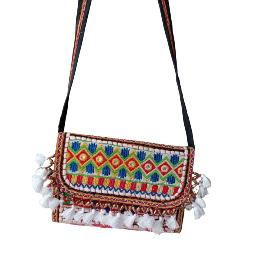 : Multicolor assorted patchwork with traditional embroidery and tassels.