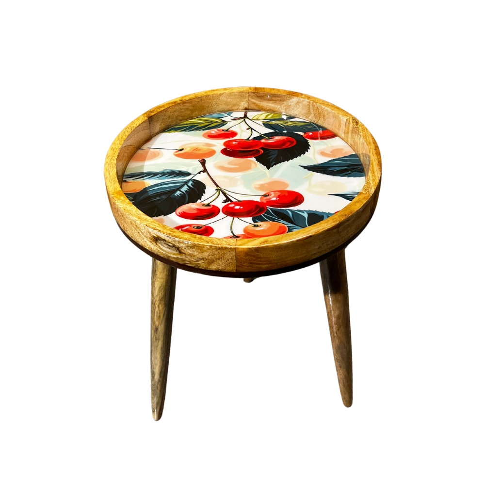 : Handcrafted cherry motif in vibrant resin on a food-safe surface